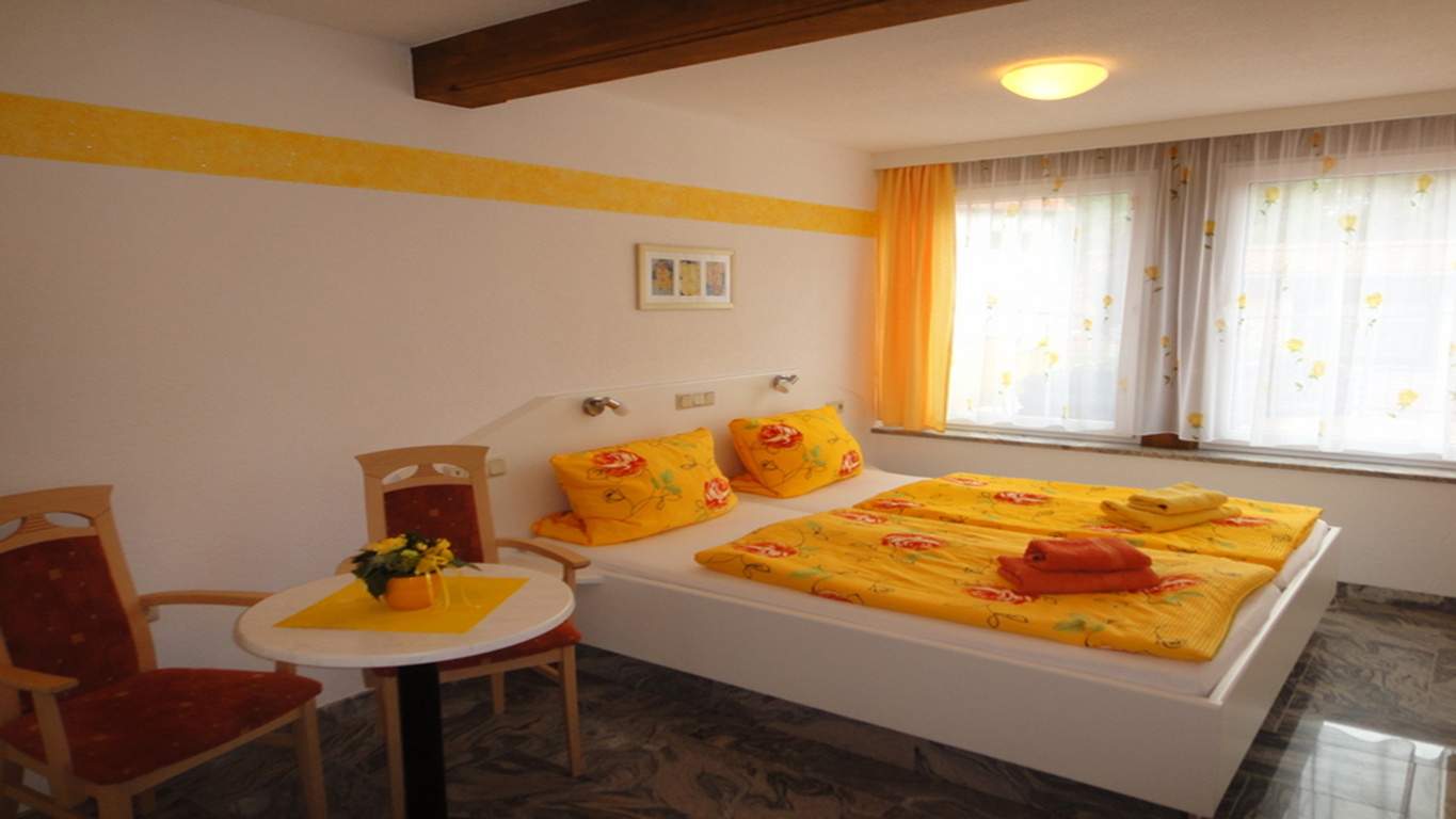 Unsere Doppelzimmer umfassen ein eigenes Bad, einen Kühlschrank, einen Flachbild-TV und Sitzmöglichkeiten.